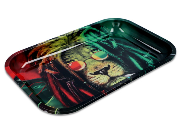Metalna podloga/tacna za motanje Rasta lav sa naočarima. Zaobljene ivice.