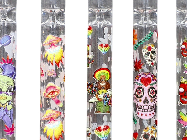 Staklena lula dužina 10,5cm sa šarolikim ukrasima.